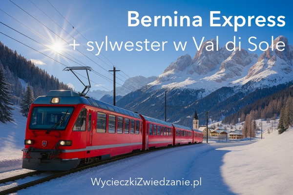 Chcesz powitać Nowy Rok w sercu Alp? Sprawdź Sylwester Swiss Sole – wyjazd łączący szwajcarskie widoki z włoskim klimatem. W programie m.in. przejazd panoramicznym Czerwonym Pociągiem Bernina Express ze Szwajcarii do Tirano, noclegi w hotelu Splendor 3* w Val di Sole, czas na termy lub narty oraz bal sylwestrowy z DJ-em z kolacją w stylu włoskim. To idealna propozycja dla osób, które szukają czegoś więcej niż zwykły sylwester w hotelu – tu naprawdę czuć klimat Alp!